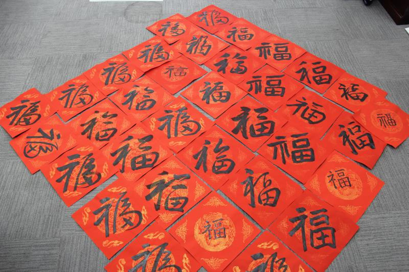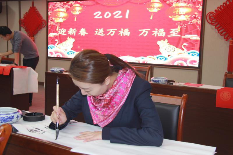 公司書畫愛好者揮毫潑墨,現(xiàn)場(chǎng)寫春聯(lián)送福字,用吉祥如意的春聯(lián),紅紅火火的大“福”字,為職工送上新春的祝福。