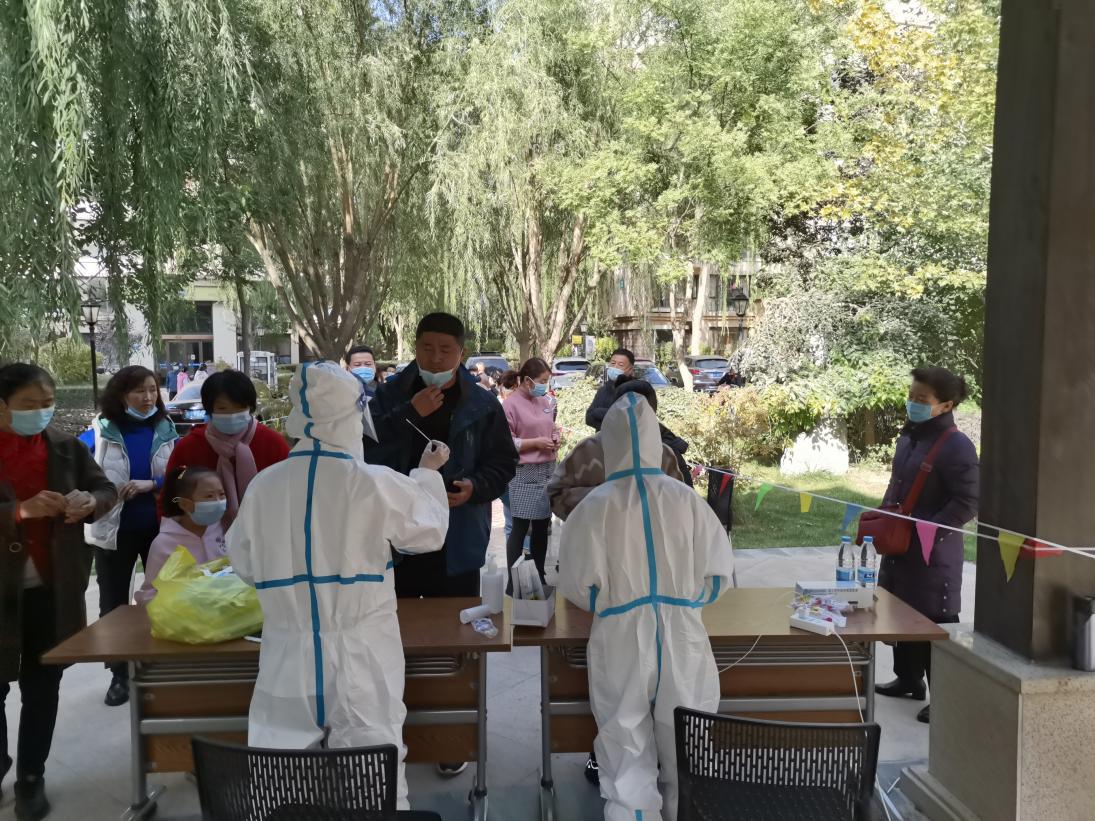 10月20日早,物業(yè)工作人員聯(lián)系當(dāng)?shù)睾怂釞z測(cè)醫(yī)護(hù)人員,有序組織開展全小區(qū)核酸檢測(cè)。