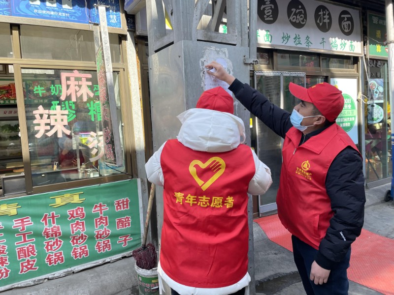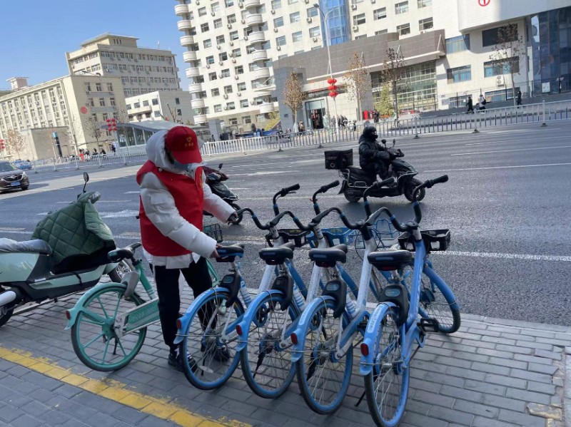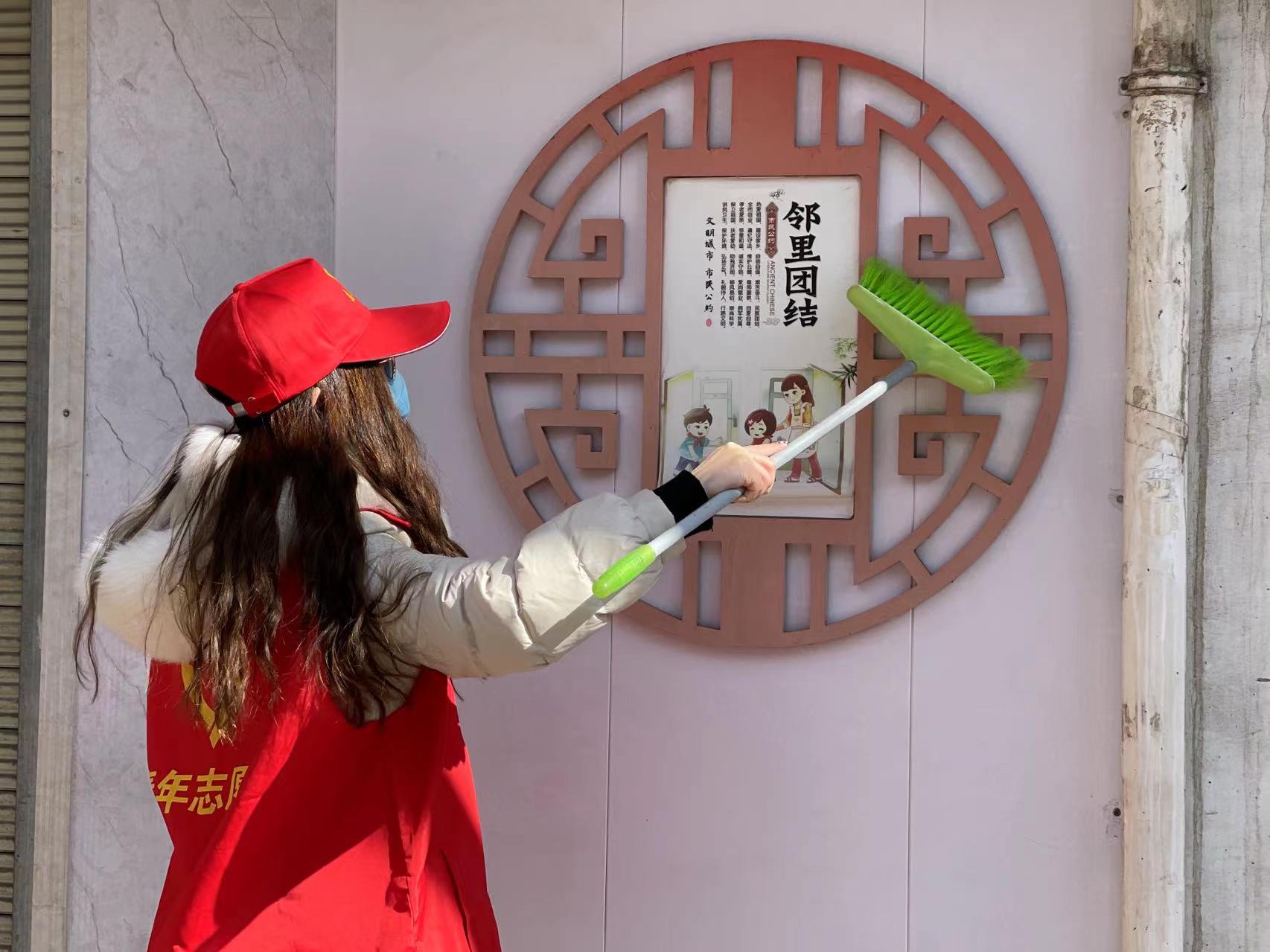 志愿者們拿著抹布、掃把、火鉗等分兩路沿街拾取道路上和綠化帶中的廢棄物煙頭等,并擦洗街路圍欄、清理公共區(qū)域內(nèi)的小廣告、擺放共享單車·······雖然天氣寒冷,但看到更加整齊的街道,每一位志愿者臉上都洋溢著開心和滿足。