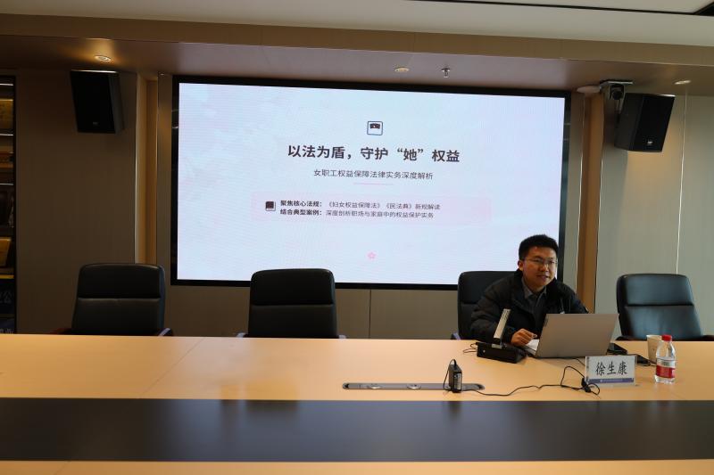 普法環(huán)節(jié)特邀合作單位律師事務所徐律師作專題講座。講座緊扣女職工關(guān)切,圍繞《中華人民共和國婦女權(quán)益保障法》《女職工勞動保護特別規(guī)定》《民法典》婚姻家庭編、反家庭暴力、職場性騷擾防治、孕期產(chǎn)期哺乳期權(quán)益、企業(yè)合規(guī)建議等重點內(nèi)容,結(jié)合典型以案釋法、以法析理,用通俗易懂的語言講解法律要點與維權(quán)路徑,現(xiàn)場互動積極、答疑務實,讓法治知識聽得懂、用得上?;顒蝇F(xiàn)場還向女職工發(fā)放了《民法典宣傳手冊》,推動法律知識隨身學、隨時用。