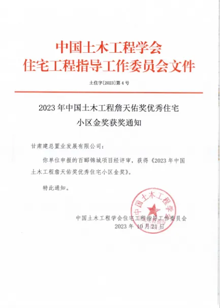 “詹天佑獎(jiǎng)優(yōu)秀住宅小區(qū)金獎(jiǎng)”是百酈錦城項(xiàng)目繼2022年榮獲地產(chǎn)行業(yè)最高榮譽(yù)“廣廈獎(jiǎng)”之后又一國(guó)家級(jí)重要獎(jiǎng)項(xiàng),是甘肅建投首個(gè)同時(shí)獲得“廣廈獎(jiǎng)”和“詹天佑獎(jiǎng)優(yōu)秀住宅小區(qū)金獎(jiǎng)”的項(xiàng)目,充分體現(xiàn)了業(yè)界對(duì)甘肅建投地產(chǎn)質(zhì)量、品質(zhì)及科技創(chuàng)新的肯定。